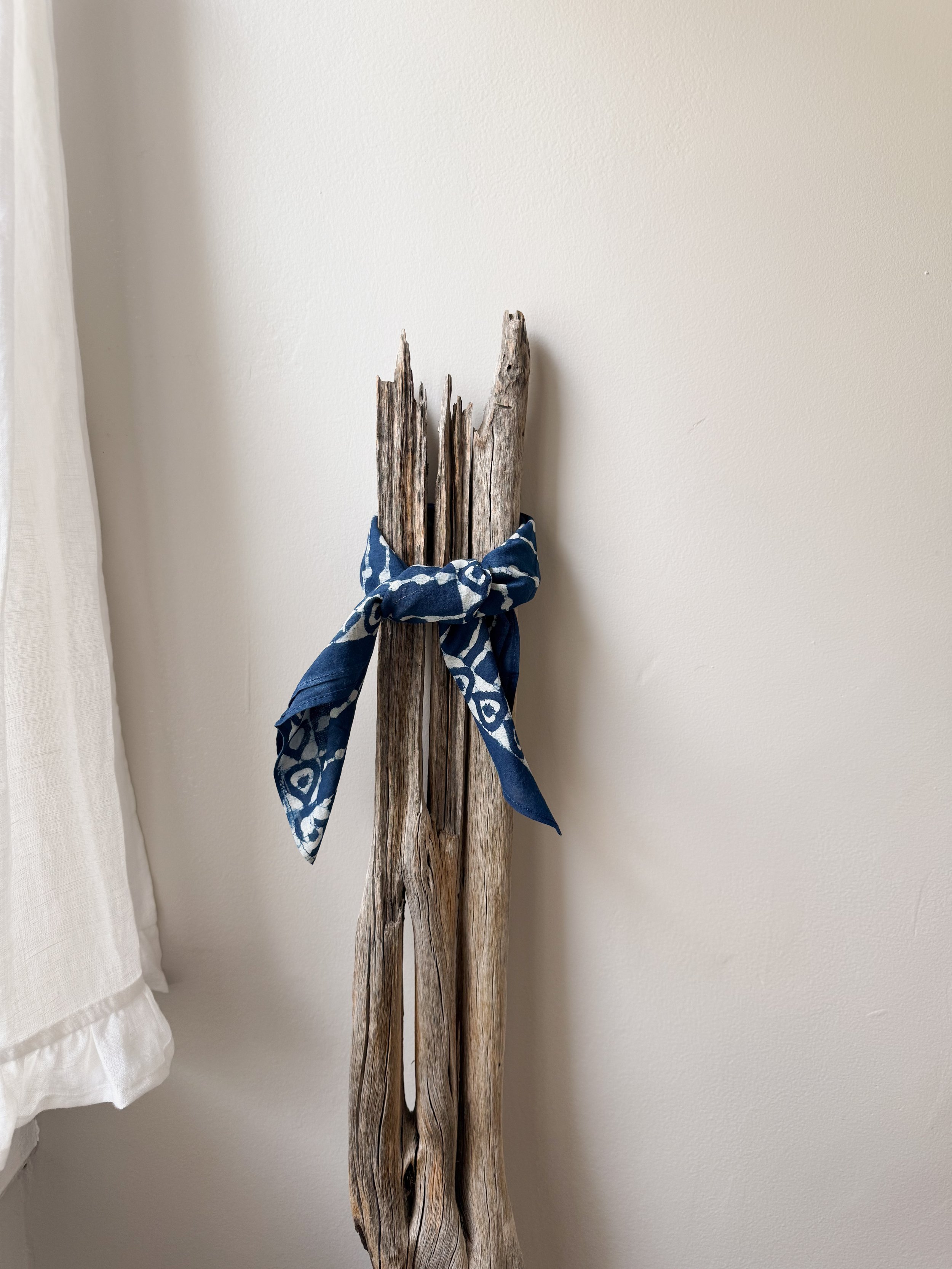 Discover the perfect blend of art and nature with our ultra soft cotton Block Printed Bandana inspired by our love for Indigo and leaves. Add a touch of rustic charm to your wardrobe with our favorite accessory. Handcrafted with all natural plant dyes.